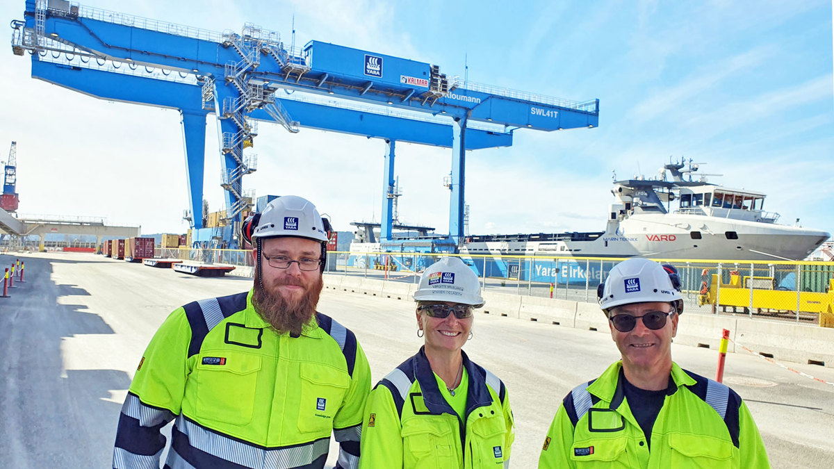 Yara Birkeland now runs once a week between Herøya and the North Sea Terminal in Brevik, and Kalmar's gantry crane is driven semi-autonomously, but has been specially developed to become fully autonomous.