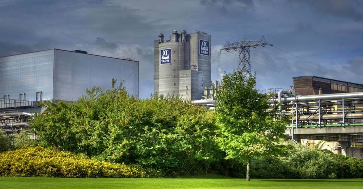 Det er brann i et av Yaras bygg. Det er lokal alarm, og iverksatt full industrivernutrykning.